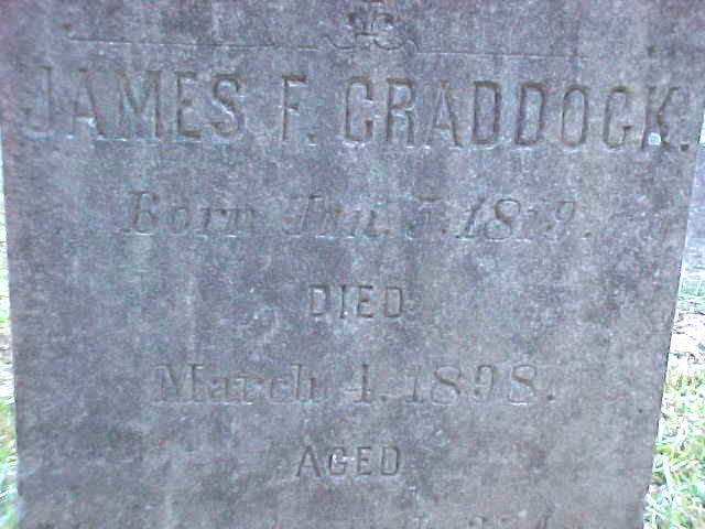 | Craddock, James F. | Jan. 5, 1819 | March 4, 1898 | Aged 70 yrs. 1 Mo & 27 days |