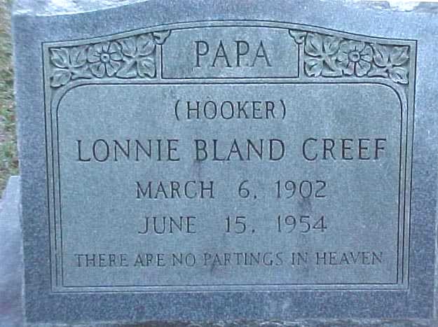 | Creef, Lonnie Bland | March 6, 1902 | June 15, 1954 | Papa; (Hooker) |