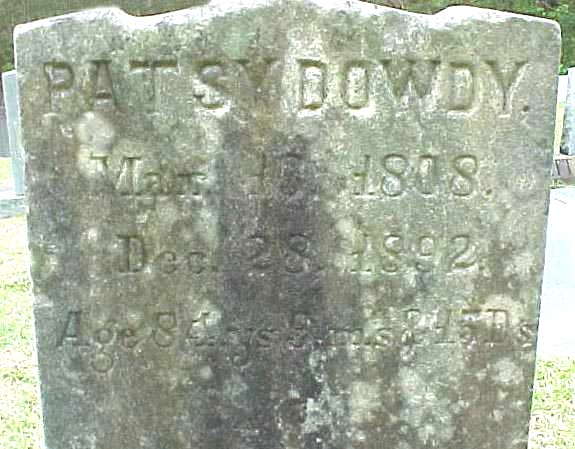 | Dowdy, Patsy | Mar. 13, 1808 | Dec. 28, 1892 | Age 84 ys 9 ms & 15 Ds |