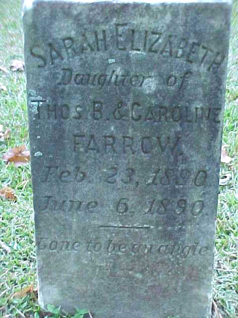| Farrow, Sarah Elizabeth | Feb. 23, 1890 | June 6, 1890 | Daughter of Thos. B. & Caroline Farrow |
