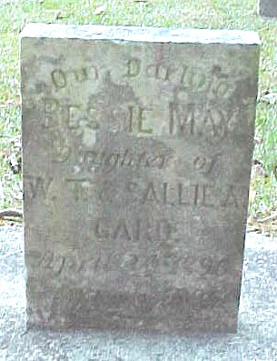 | Gard, Bessie May | April 24, 1896 | Aug. 23, 1896 | Daughter of W.T. & Sallie A. Gard |