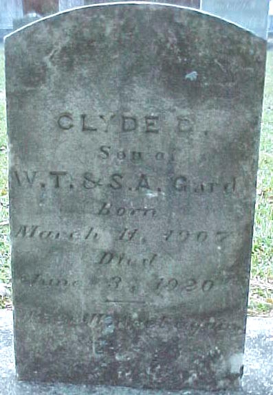 | Gard, Clyde D. | March 11, 1907 | June 3, 1920 | Son of W.T. & S.A. Gard |