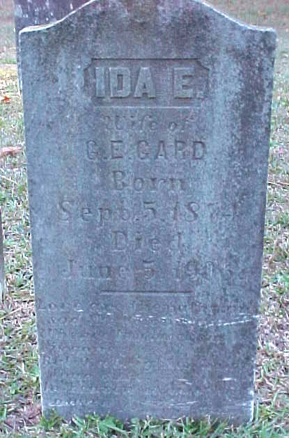 | Gard, Ida E. | Sept. 5, 1874 | June 5, 1906 | Wife of G.E. Gard |