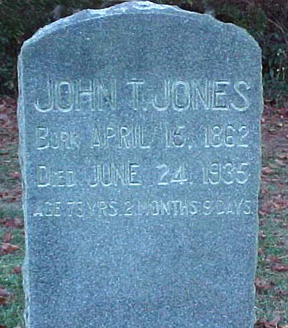 | Jones, John T. | April 15, 1862 | June 24, 1935 | Age 73 Yrs 2 Months 9 Days |