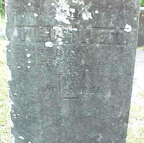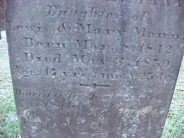 | Mann, Easter B. | Mar. 8, 1842 | May 3, 1859 | Daughter of Lewis & Mary Mann; Age 17 yrs. 1 mo. & 25 dys |