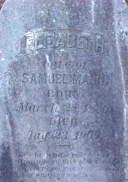 | Mann, Elizabeth | March 28, 1836 | Aug. 23, 1909 | Wife of Samuel Mann |