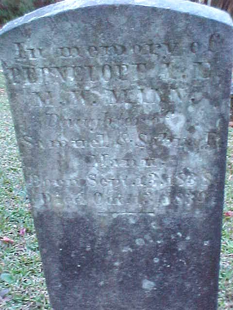 | Mann, Penelope A.E.M.W. | Sept. 13, 1838 | Oct. 13, 1839 | Daughter of Samuel & Sabra E. Mann |