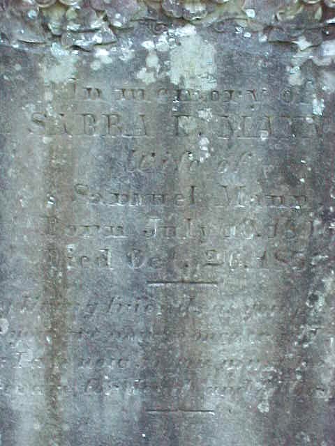 | Mann, Sabra E. | July 10, 1806 | Oct. 26, 1857 | Wife of Samuel Mann |