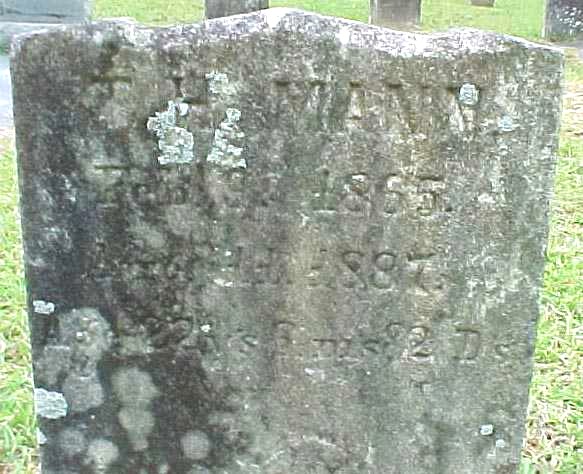 | Mann, T.H. | Feb. 9, 1865 | Aug. 11, 1887 | Age 22 ys 6 ms & 2 Ds [see Wm. Mann Bible] |