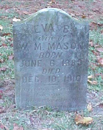 | Mason, Eva B. | June 6, 1889 | Dec. 10, 1910 | Wife of W.M. Mason |
