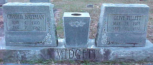 | Midgett, Olive Tillett | Mar. 23, 1903 | Sept. 10, 1981 | [double with Charlie Bateman Midgett] |