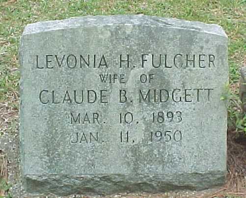 | Midgett, Levonia H. Fulcher | Mar. 10, 1893 | Jan. 11, 1950 | Wife of Claude B. Midgett |