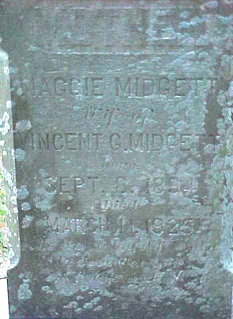| Midgett, Maggie | Sept. 8, 1894 | March 11, 1925 | Mother; Wife of Vincent G. Midgett |