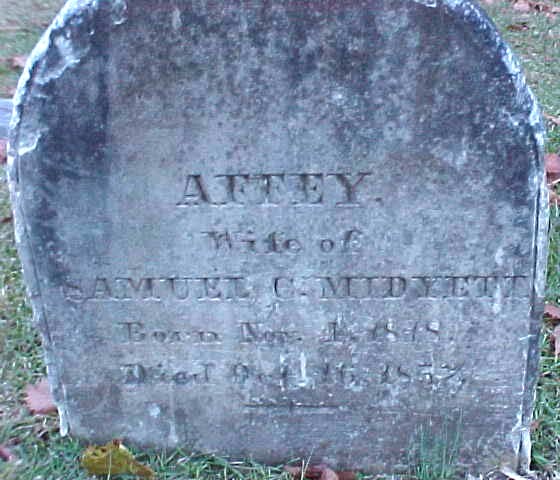 | Midyett, Affey | Nov. 4, 1818 | Oct. 16, 1857 | Wife of Samuel C. Midyett |