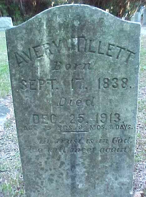 | Tillett, Avery | Sept. 17, 1838 | Dec. 25, 1913 | Age Yrs, 3 Mos, 8 Days |
