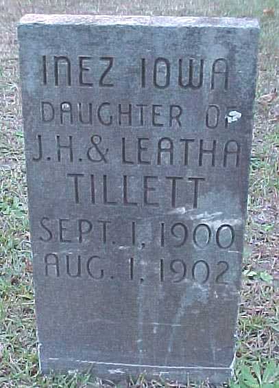 | Tillett, Inez Iowa | Sept. 1, 1900 | Aug. 1, 1902 | Daughter of J.H. & Leatha Tillett |