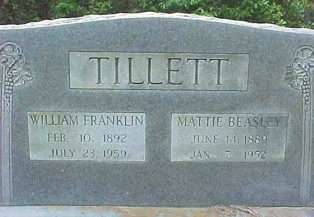 | Tillett, Mattie Beasley | June 14, 1889 | Jan. 7, 1952 | [double with William Franklin Tillett] |