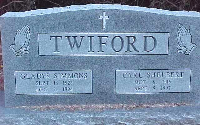 | Twiford, Gladys Simmons | Sept. 18, 1923 | Dec. 1, 1994 | [double with Carl Shelbert Twiford] |