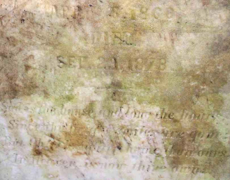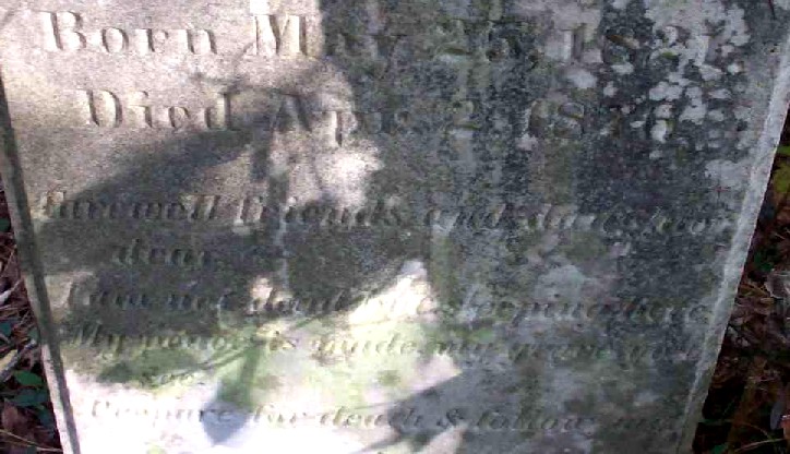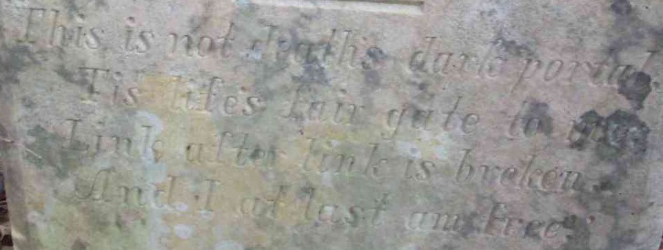 Close-up "She sleeps in Jesus and is blest. How sweet her slumbers are: From suffering & from sin released. She's freed from every care." |