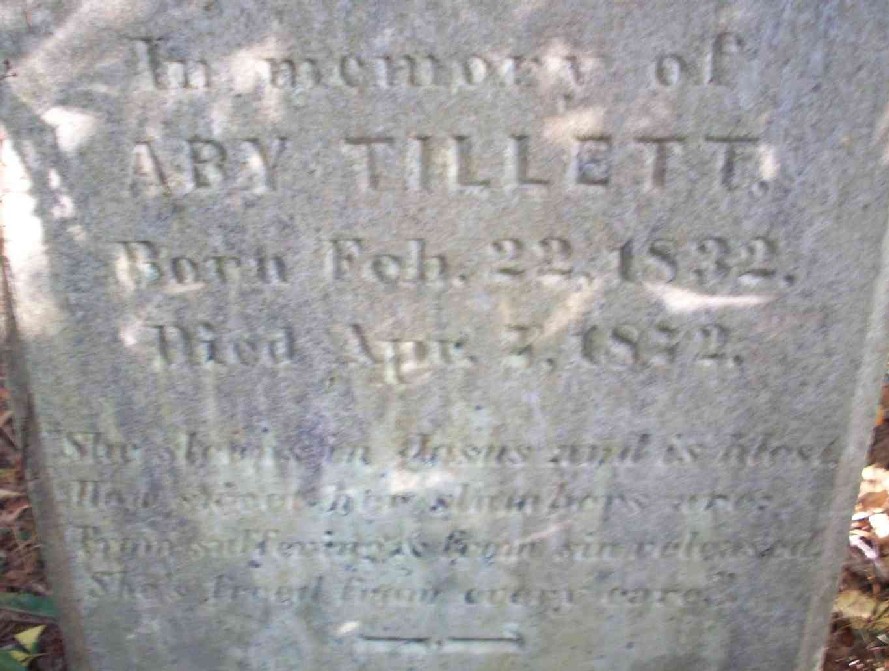 | Tillett, Aby | Feb. 22, 1832 | Apr. 7, 1872 |
