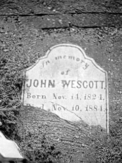 | Wescott, John | Nov. 14, 1824 | Nov. 10, 1884 | [In the 1995 survey this gravestone was outside the fence at the north end of the cemetery] This photo is part of the Talmadge Spence, Jr. family collection and is submitted by Sloan (Spence) Mason with permission granted. |