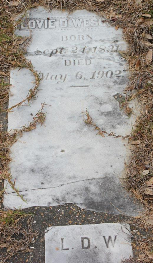 | Wescott, Lovie D. | Sept. 24, 1831 | May 6, 1902 | Her obituary appeared in The Tar Heel on Friday, May 16, 1902 and read: DEATH OF MRS. WESCOTT - Mrs. Lovie D. Wescott, age 70 years, died at the home of her son, Capt. J.T. Wescott at Poyner's Hill on May 6th. She had been a sufferer for many years and had been confined to her bed over 7 weeks. She leaves two daughters, four sons, several grandchildren and 6 great-grandchildren. Capt. J.T. Wescott and his brother, Robt. L. Wescott, and Mr. Grandberry Dowdy took her to Roanoke Island where she was interred in the family burying ground beside her husband. She was a member of the Baptist church. |