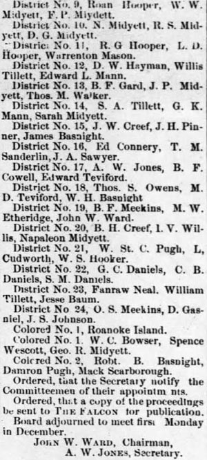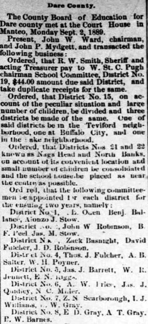 Dare County School Board - 1889 Source: The Falcon (Elizabeth City, NC) - September 13, 1889