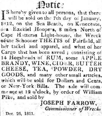 W.T. Cahoon, S.B. Pugh, G.W. Williams and R.W. Midgett have been appointed Commissioners of Wrecks for Dare County by Gov. Russell.Fisherman & Farmer (Elizabeth City, NC) Friday, August 6, 1897