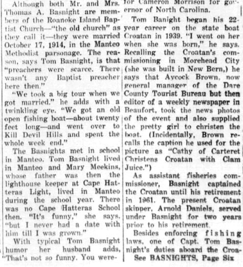 The Coastland Times (Manteo, NC) Sunday, June 27, 2010; pg. 1A & 10A by Pat Fearing