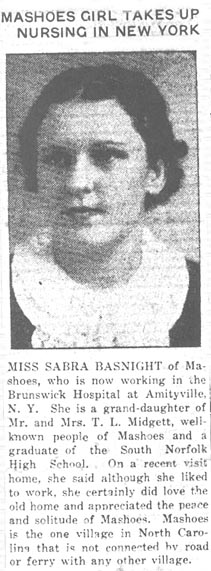 Miss Martha Swain of Frisco came down Saturday and will spend some time at Hatteras visiting her cousin, Miss Ruth Styron.