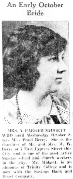 On the 4th inst. Mr. B.S. Clark [Bondaman S. Clark] and Crelina Fulcher [Evelina Fulcher, d/o David F. Fulcher & Barzilla Brittania Midgett] were united in matrimony by Elder M.F. Whedbee of the Disciples Church. On the 10th inst. Mr. E.E. Burrus [Elmer Ellsworth Burrus] and Miss Liconia Huster [Laura Leona Austin] followed suit at the Methodist Church. Mr. Galloway officiated.The Economist-Falcon (Elizabeth City) Friday August 30, 1895; pg. 2; col. 4
