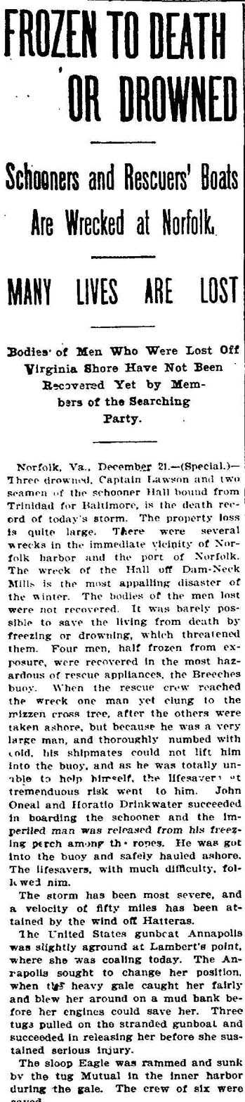The annual report of the U.S. Life-saving Service for the fiscal year ending June 30, 1900 states: "Here was a dilemma that called for the exercise of sound judgment and faultless courage."