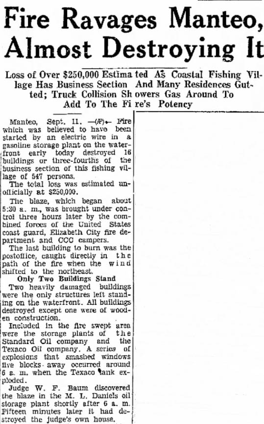 Mrs. Daniel Baum of Manteo came down this week and will spend some time at Hatteras Inlet Station where her husband is engaged in some building work for the Life Saving Service.