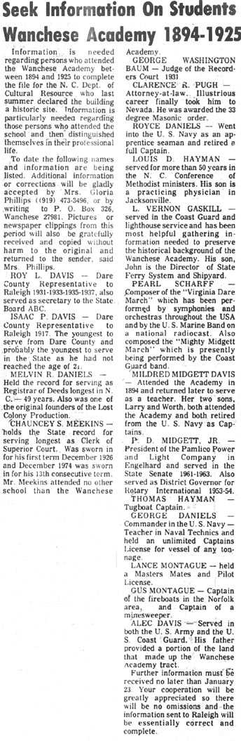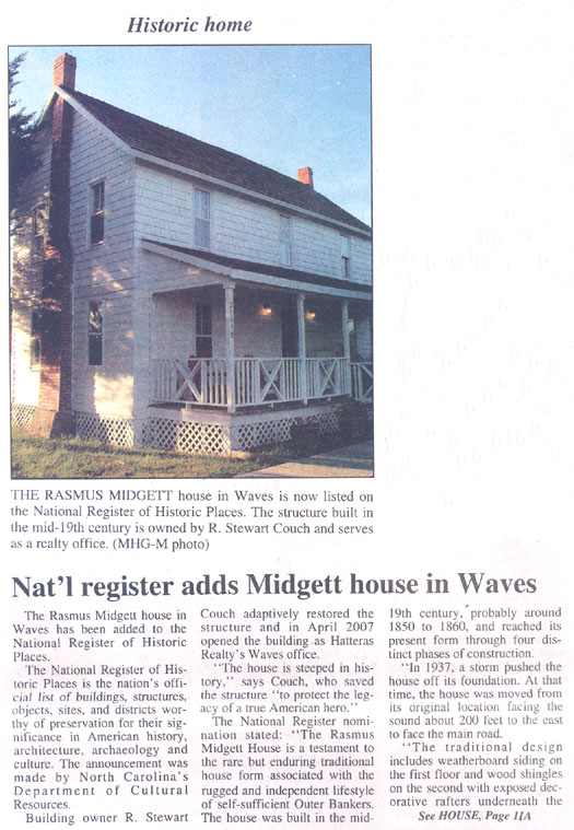 The Coastland Times (Manteo, NC) Tuesday, December 30, 2008; pgs. 1 & 13A)