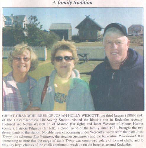 DESCENDANTS HONOR HEROIC LIFE-SAVER - A mighty deed was commerated on Wednesday, Aug. 18 at the Chicamacomico Lifesaving Station. On this 100th anniversary day, descendants and historians gathered to hear and celebrate the heroic story of lifesaver Erasmus Scarborough Midgett.