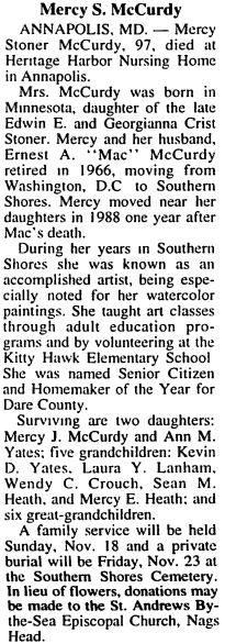 (The Coastland Times [Manteo, NC] - Tuesday, September 19, 2000; pg. 9A)