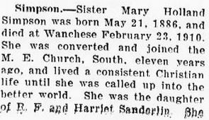 Mary Holland Sanderlin Simpson