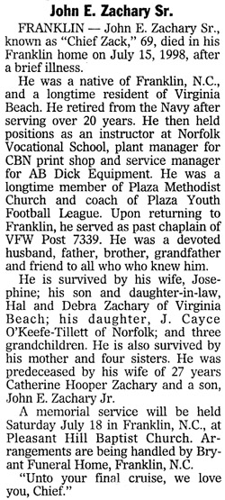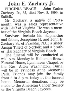 June 17, 1929 - July 15, 1998John Elden Zachary, Jr.