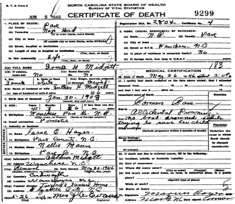 Haywood Midgett. Irma drowned while trying to save her youngest child,