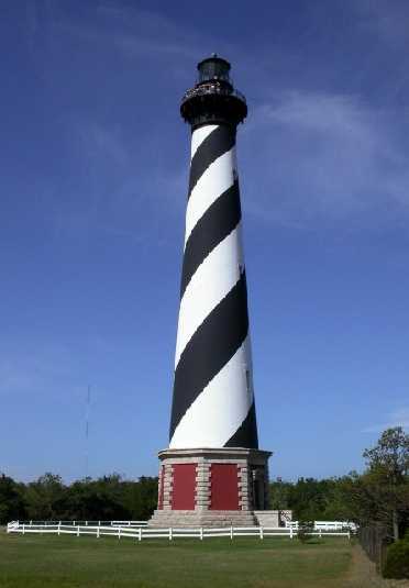 The famous Cape Hatteras Lighthouse, located in Buxton, is possibly the most famous lighthouse in the nation. The tallest brick lighthouse at 208 feet, it survived a move of more than 1,600 feet away from the eroding shoreline in 1999. The Cape Hatteras Lighthouse is open for climbing from late March to early October each year. There are daily lighthouse tours, and the ticket booth opens each day at 8:30 a.m. Tickets are only available for the date of purchase, and tours normally sell out by noon each day. The cost to climb the lighthouse is $6 for adults and $3 for children and Senior Citizens. The climb is a tough one with several winding staircases, but the breathtaking views from the top will be something you will never forget. There is also a visitor center and bookstore on the premises, located in the former keepers' quarters. |