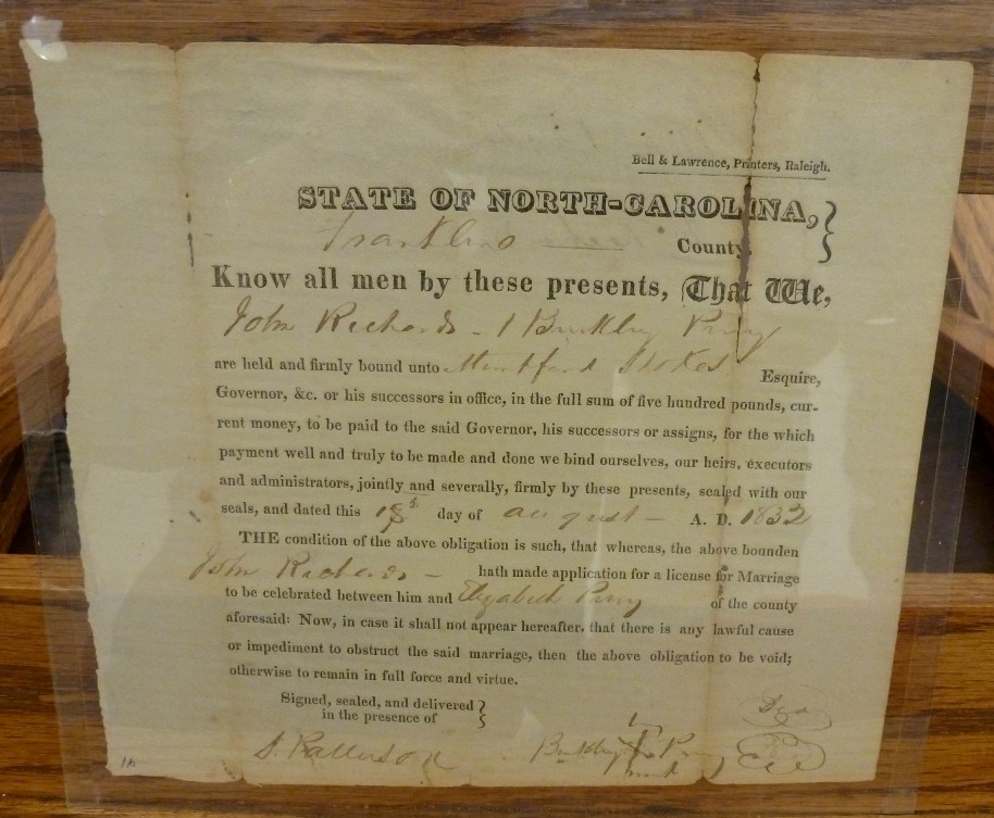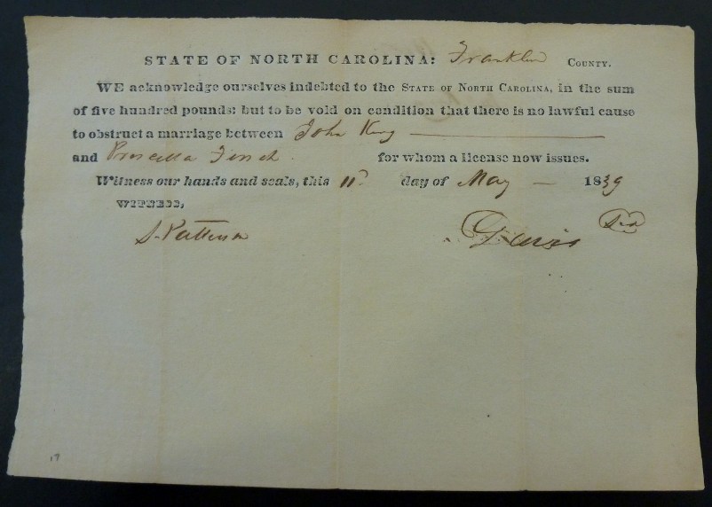 Some Franklin County Marriage Records - Images included Submitted by Katherine Benbow (Click on to Groom's name to view image) John KING - Priscilla FINCH - May 11, 1839 William PRIVETT - Anna UPCHURCH - November 25, 1837 John RICHARDS - Elizabeth PERRY - August 18, 1832 Sidney RICHARDS - Nancy PRIVETT - January 15, 1859