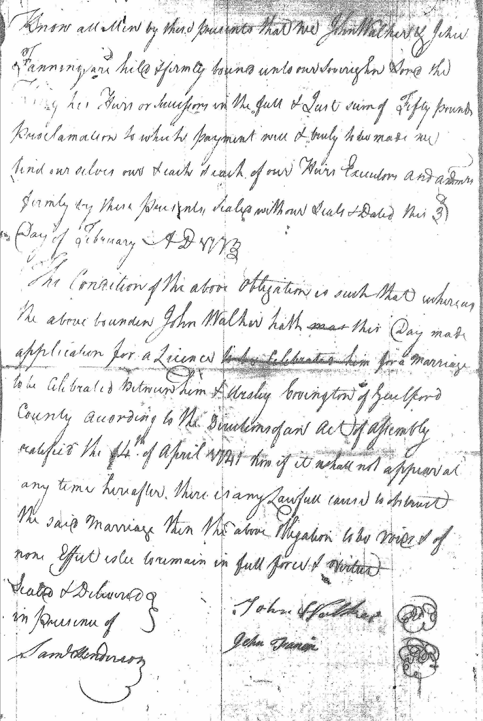 | John Walker | Ursley Covington | 3 Feb 1773 | Jehu Fanning | Saml. Henderson | |