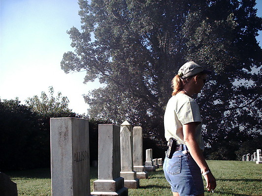 | Jordan, g-g-g-grandaughter of Joshua & Mattie Allison, says "We need a flag here!" |