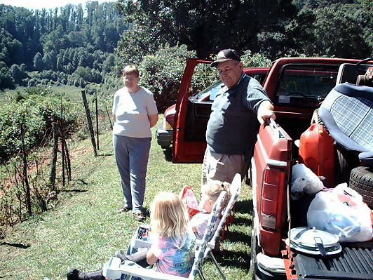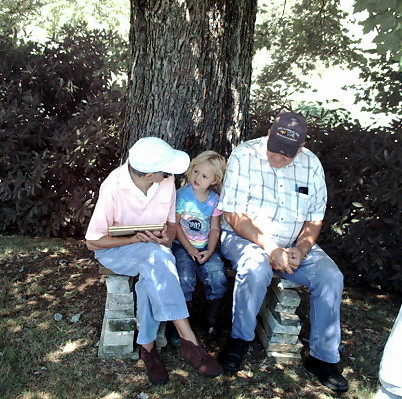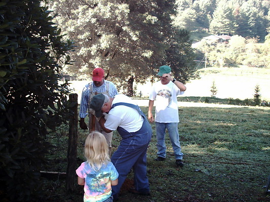 Charlie Allison, Robert Hugh Allison, & Bob Frady working on the gate between the used and unused parts of the cemetery | Lois Owen Harris, Wilburn Owen, Kirby Owen, and Dottie Hall |