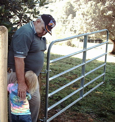 Bob Frady and granddaughter Jessica discuss the new gate |