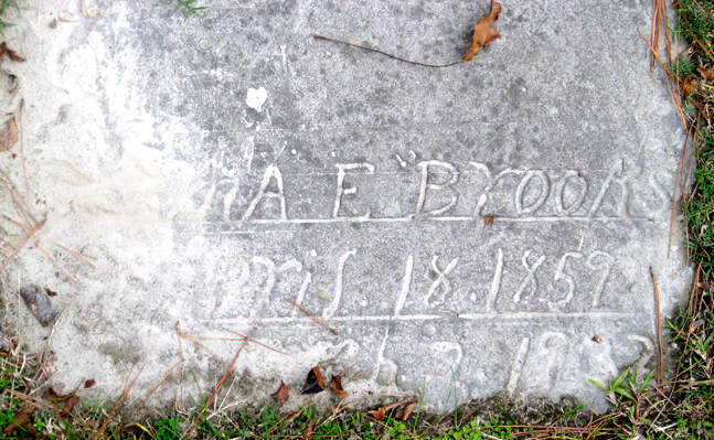 | Brooks, P.H. [Patsy Hill] | June 10, 1863 | Jan. 18, 1883 | [no headstone found] Birth & death dates are from the William Brooks Bible |
