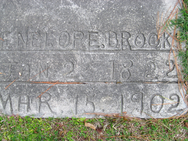 | Brooks, Penelope | Jan. 2, 1822 | Mar. 15, 1902 | [grave covered with cement] |