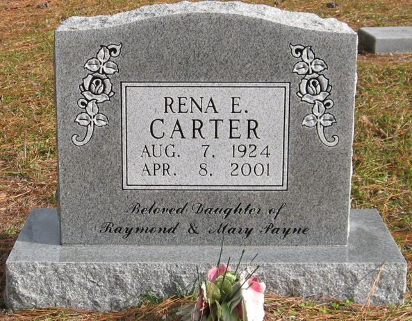 | Carter, Rena E. | Aug. 7, 1924 | Aug. 8, 2001 | Beloved daughter of Raymond & Mary Payne |