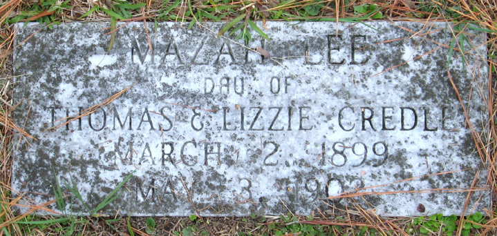 | Credle, Mazah Lee | March 2, 1899 | May 3, 1902 | Dau of Thomas & Lizzie Credle |