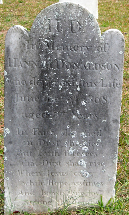 | Donaldson, Hannah | [c1731] | June the 23d 1808 | In Memory Of -